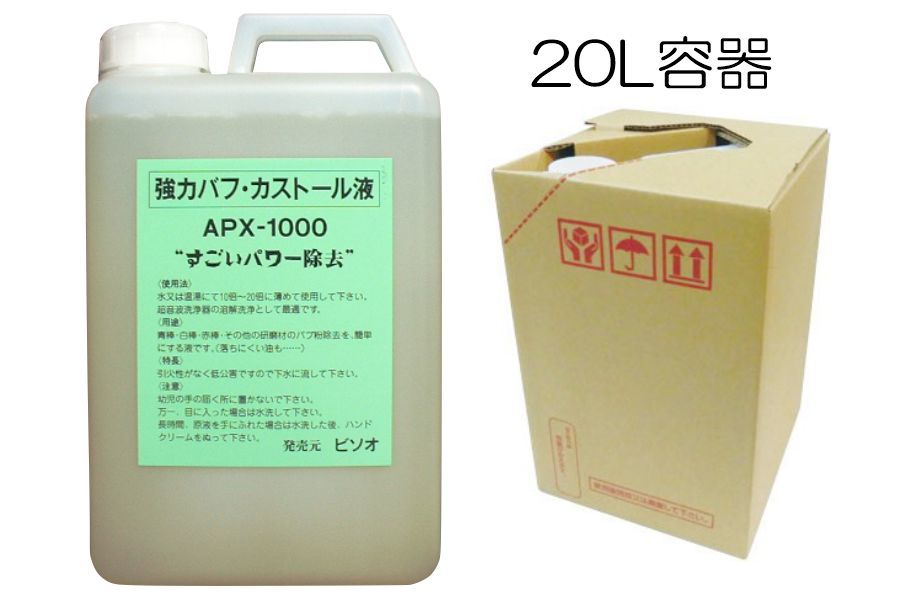 バフカス用洗浄液(20L) APX-1000-20 バフカストール液 様々な素材のガンコな汚れ落としに使用できます。 33,500円(税別)送料無料 |