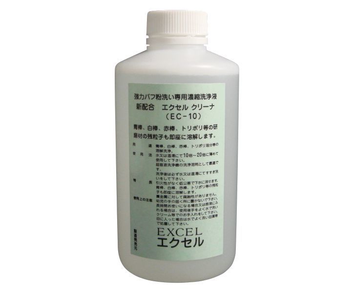 バフカス用洗浄液(1L) EC-10 エクセルクリーナー バフ研磨後のこびりついた汚れの洗浄に適しています。 2,200円(税別) |