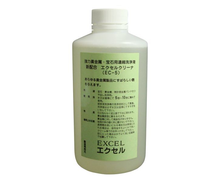 光沢用洗浄液(1L) EC-5 エクセルクリーナー ジュエリー、時計、メガネなどのつや出し洗浄に最適な洗浄液です。 2,200円(税別) |