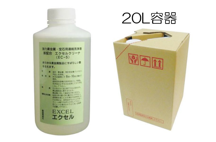 光沢用洗浄液 (20L) EC-5-20 エクセルクリーナー ジュエリー、時計、メガネなどのつや出し洗浄に最適な洗浄液です。 35,000円(税別)送料無料 |