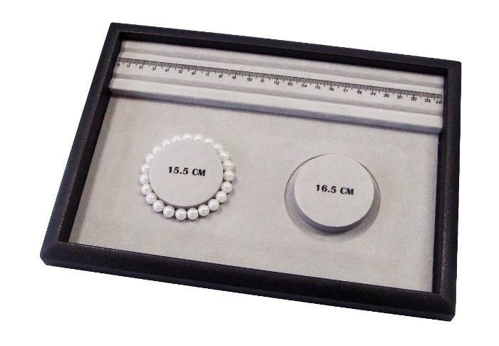 ブレスレットの円状溝とスケール付溝が付いているトレーです。