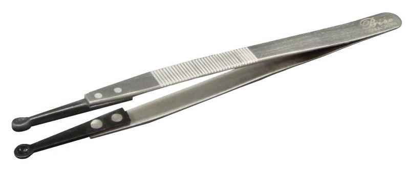 真珠や円形状の物や、キズを付けたくない商品に使用できるピンセットです。