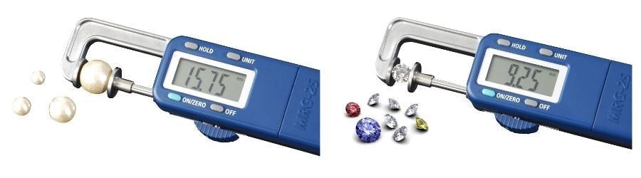 フラット構造の測定子により、測定が面倒な極小の宝石や真珠なども簡単に測定できます。