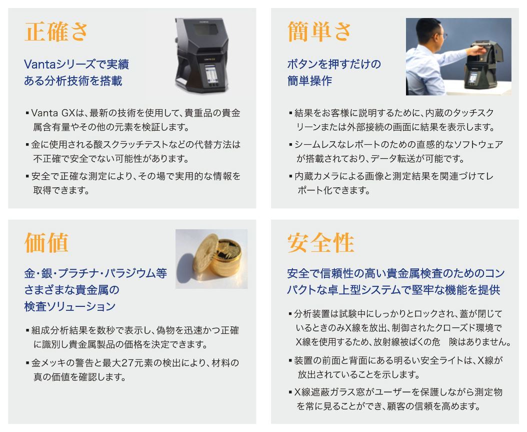 製品仕様 | VANTA GX 貴金属X線分析装置ハイエンドモデル エビデント(EVIDENT) |