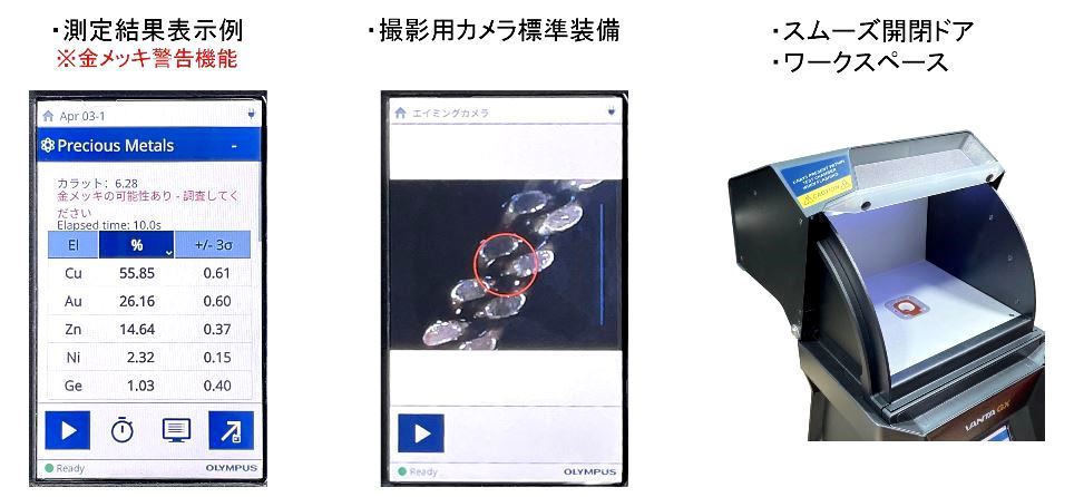 また金メッキの警告と有害元素(鉛やカドミウムなど)の検出により偽物をすばやく識別します。