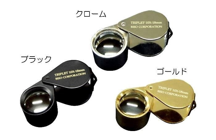 10倍トリプレットルーペ クローム・ゴールド・ブラック 1番売れている低価格、高品質なルーペです。ジュエリーや宝石観察に最適。 1,980円(税別) レターパックライト対応 人気商品 |