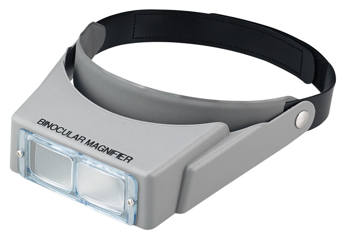 極めて軽量なヘッドルーペで、両眼にフィットする2個の角レンズにより、