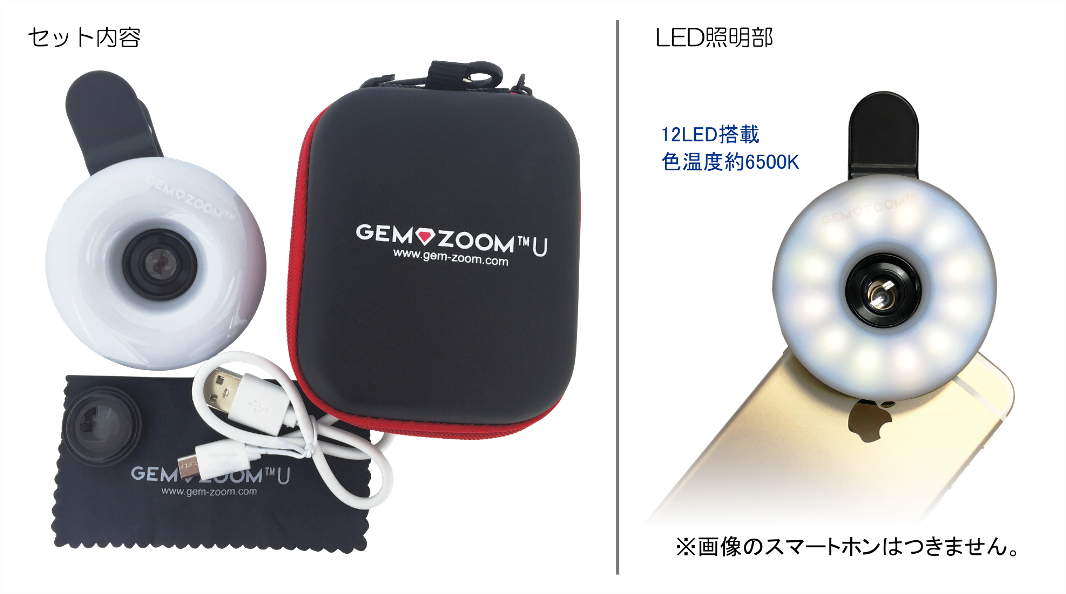 ジェムズームU (GEM-ZOOM-U) スマホで簡単に拡大接写ができます。明るいLEDライトと10倍拡大レンズを搭載してますので、きれいに撮影が可能。 13,500円(税別) レターパックプラス対応 |