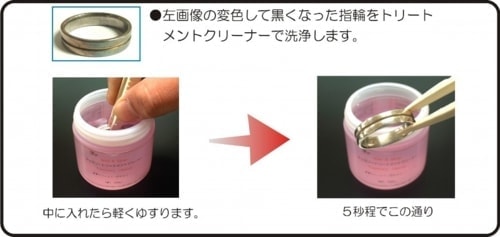 トリートメントクリーナーは黒く変色(硫化)した、銀製品、金製品を数秒で元の輝きに戻します。