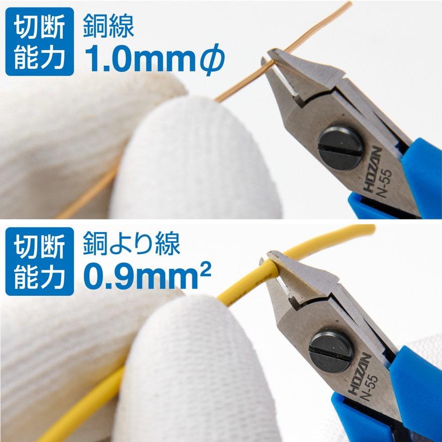 | 精密ニッパー N-55(HOZAN製) フルフラッシュカット 切断面が平らになります。 | 精密ニッパー N-57(HOZAN製) セミフラッシュカット 切断面がほぼ平らになります。 | 精密ニッパー N-58(HOZAN製) セミフラッシュカット 切断面がほぼ平らになります。 |