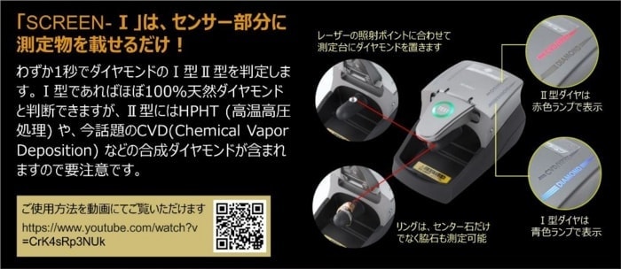 SCREEN-Ⅰ(スクリーンⅠ)はわずか1秒でダイヤモンドⅠ型、Ⅱ型を判定します。