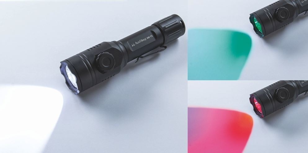 | 明るさ、使用時間 | 白色/760ルーメン、4.5時間 緑色/129ルーメン、7時間 赤色/109ルーメン、4.75時間 |