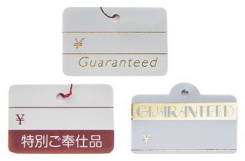 タグ付紙製値札 3種類、各50枚入 定番のタグ付値札です。 A、レッド /450円(税別) B、ゴールド/680円(税別) C、ゴールド/680円(税別) レターパックライト対応 |