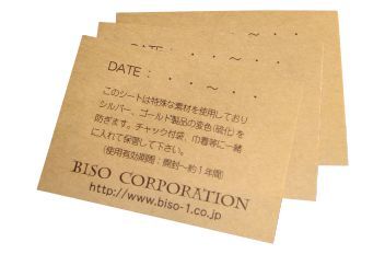 銀製品、金製品変色防止シート 銀、金、真鍮などの黒さびを防止、長期保管に最適です。用途に合わせて大きさが3種類あります。 小(10枚入)/380円(税別) 中(5枚入)/480円(税別) 大(5枚入)/860円(税別) |