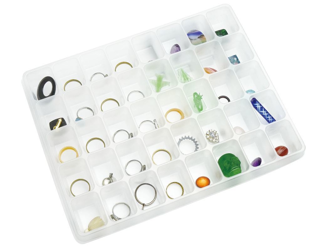 やわらかいソフトトレーでジュエリー、宝石、精密部品など様々な物の保管に最適です。