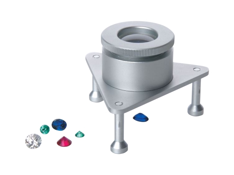 トライポットルーペ10倍 真上から除いて品物を観察する宝石選別などに最適なトリプレットルーペです。 4,750円(税別) |